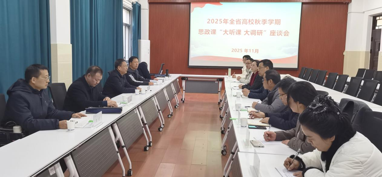 根据省委教育工委、省教育厅2025年度全省高校秋季学期思政课“大听课、大调研”活动安排,11月25日上午,由信阳师范大学马克思主义学院院长唐国战任组长的第十五调研组到我校开展思政课听课调研。校党委书记姚勇出席调研座谈会,马克思主义学院领导班子及各教研室负责人、教师代表参加。