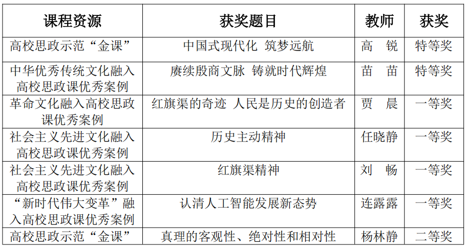 近日,中共河南省委教育工委办公室、河南省教育厅办公室公布了2025年度优秀思政课程资源评审结果,我院教师荣获特等奖两项、一等奖四项、二等奖一项。